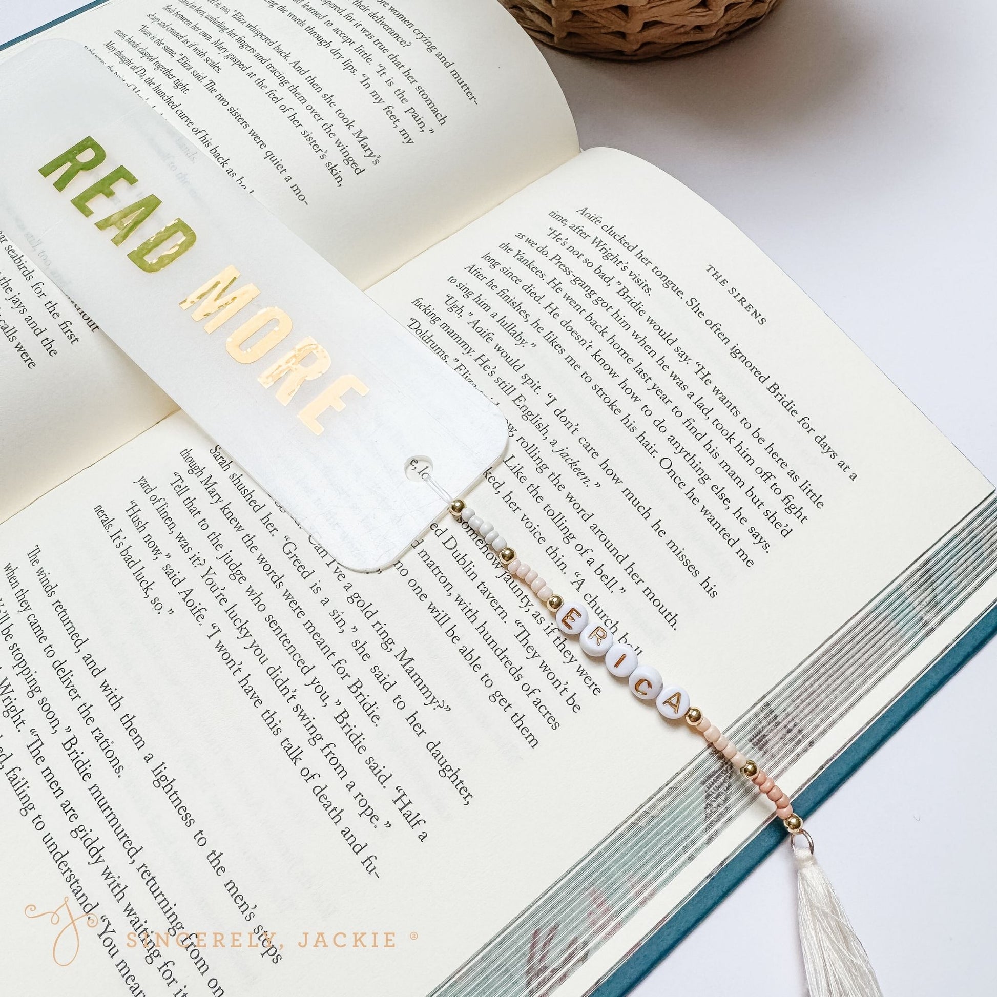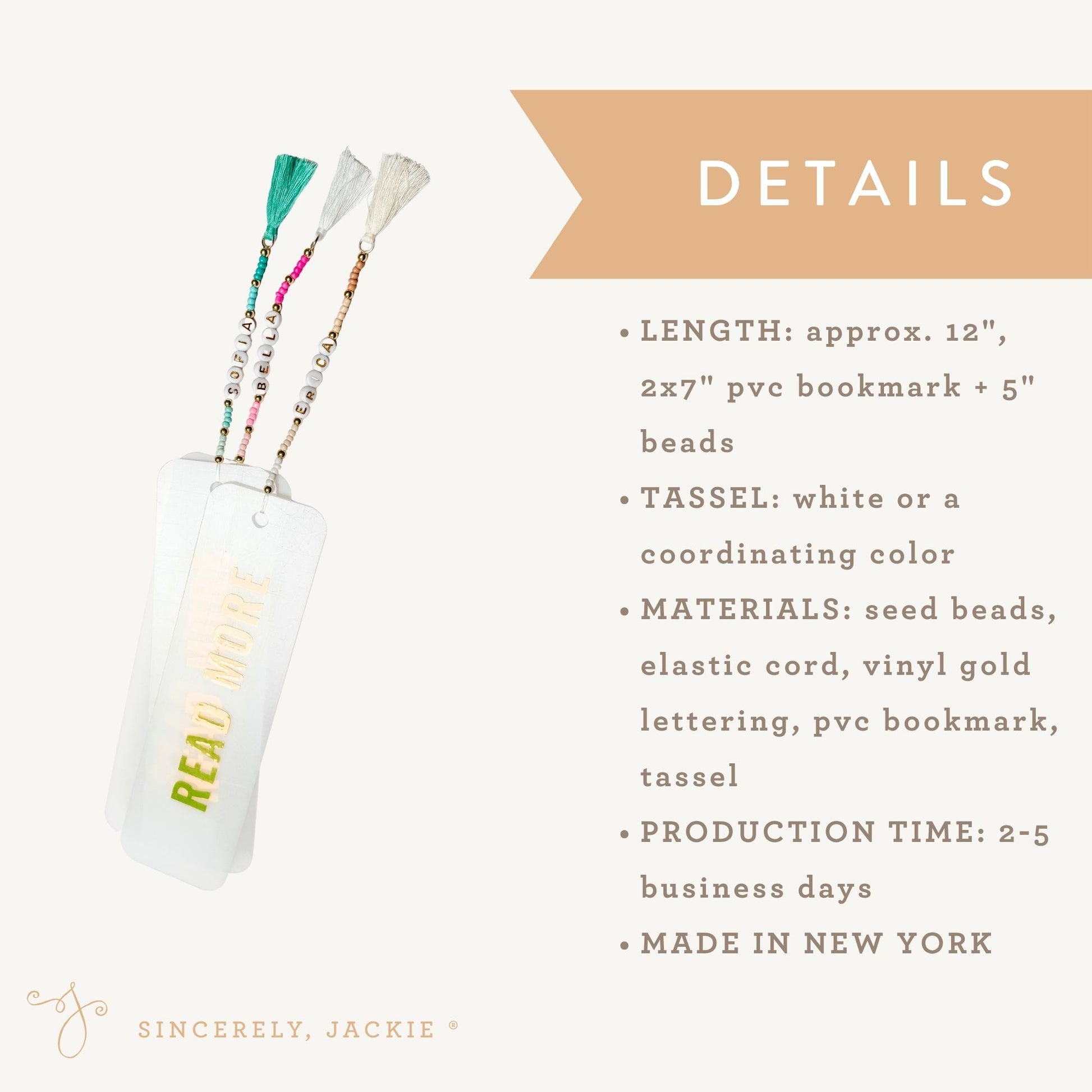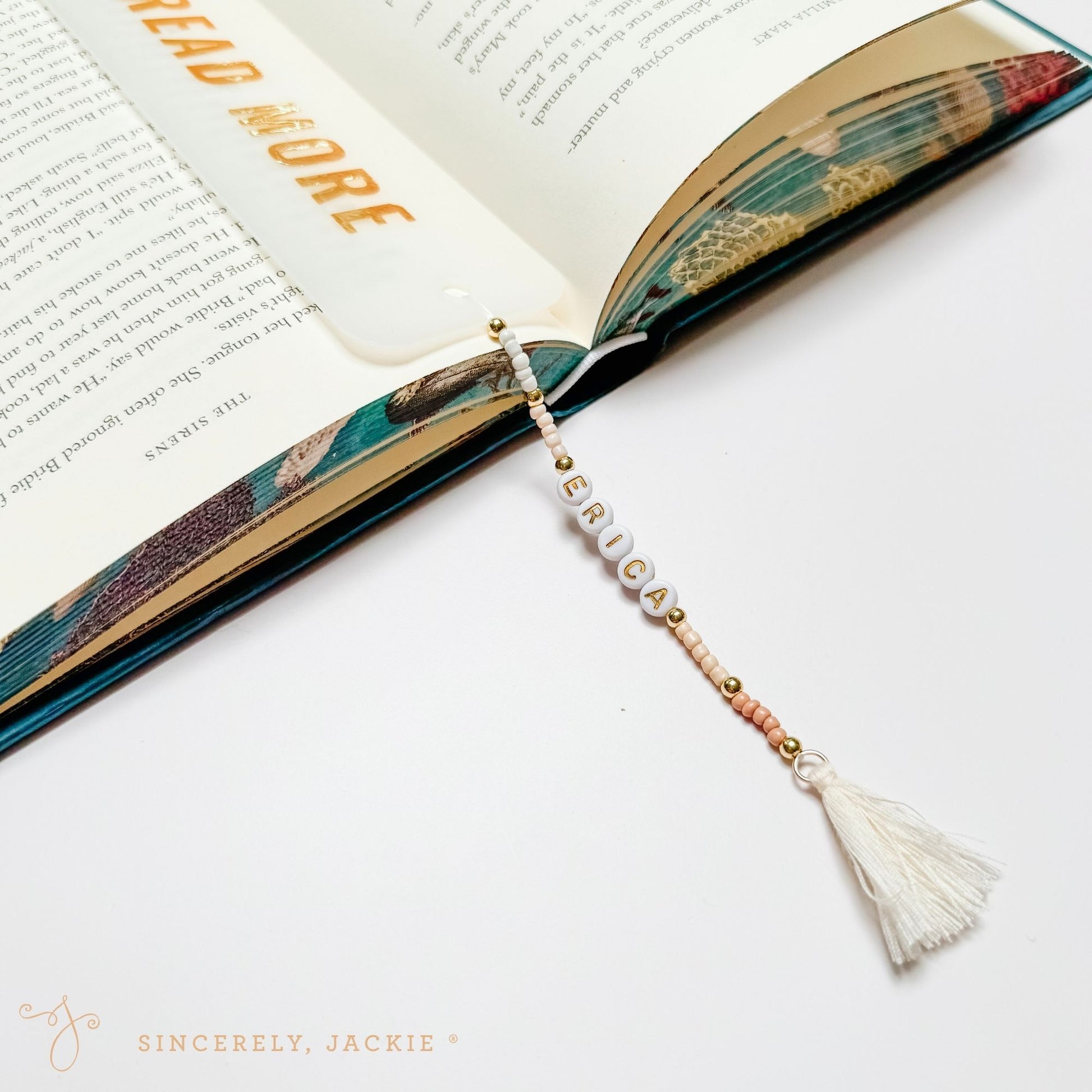 Colorful, personalized, and made just for you—this handmade bookmark features vibrant seed beads, gold accents, and your custom name in letter beads.