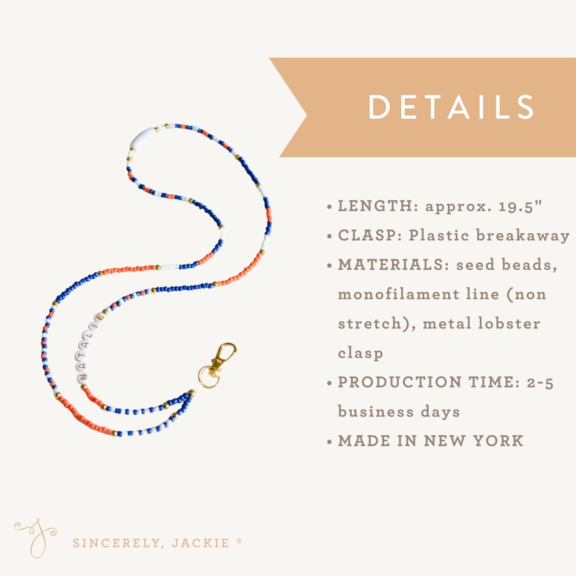 Keep your keys, ID, or badge close at hand — and look good while doing it! Each lanyard is handmade in my New York studio with durable materials and thoughtful details, so it’s both practical and pretty.