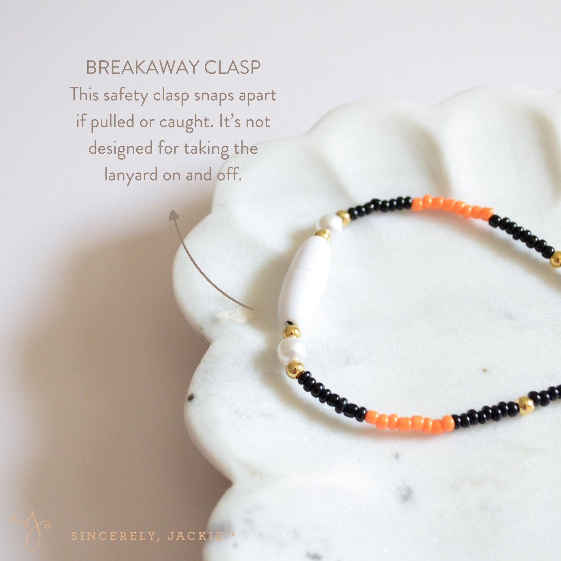 • Breakaway Safety Clasp: Designed to release if tugged, so it won't break and scatter beads everywhere.