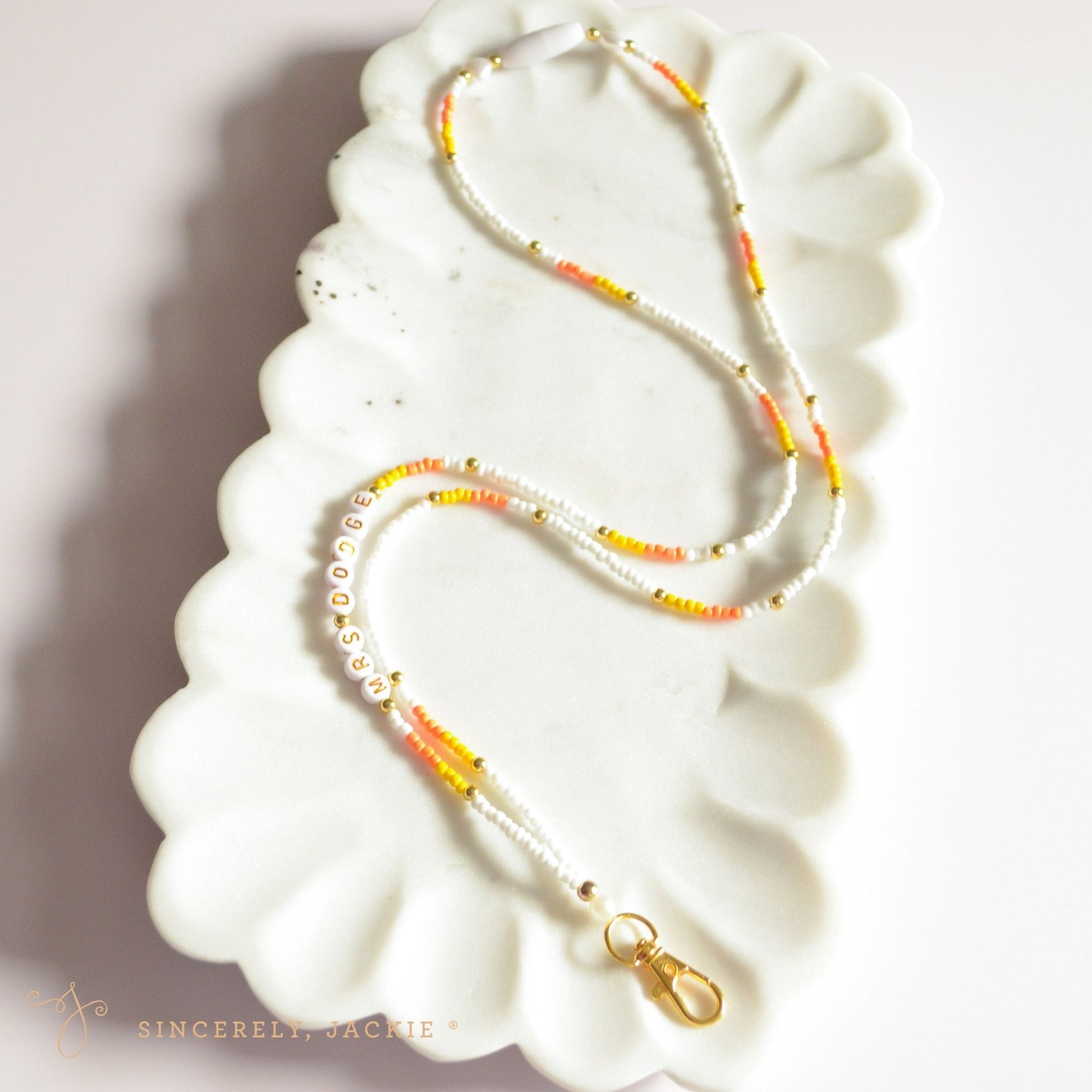 Keep your keys, ID, or badge close at hand — and look good while doing it! Each lanyard is handmade in my New York studio with durable materials and thoughtful details, so it’s both practical and pretty.