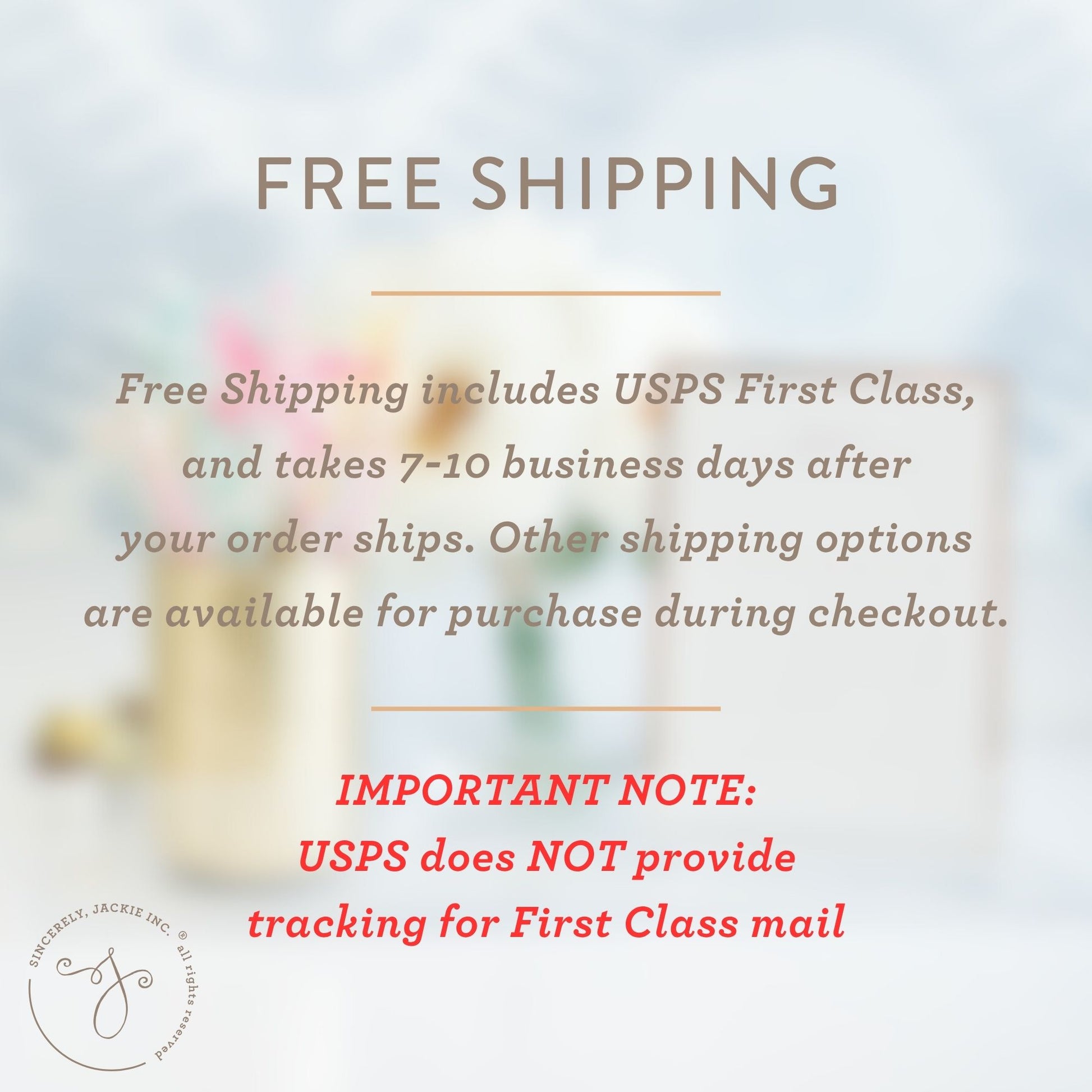 All items ship USPS. Select your shipping speed at checkout. Items eligible for free shipping are USPS Ground or equivalent.