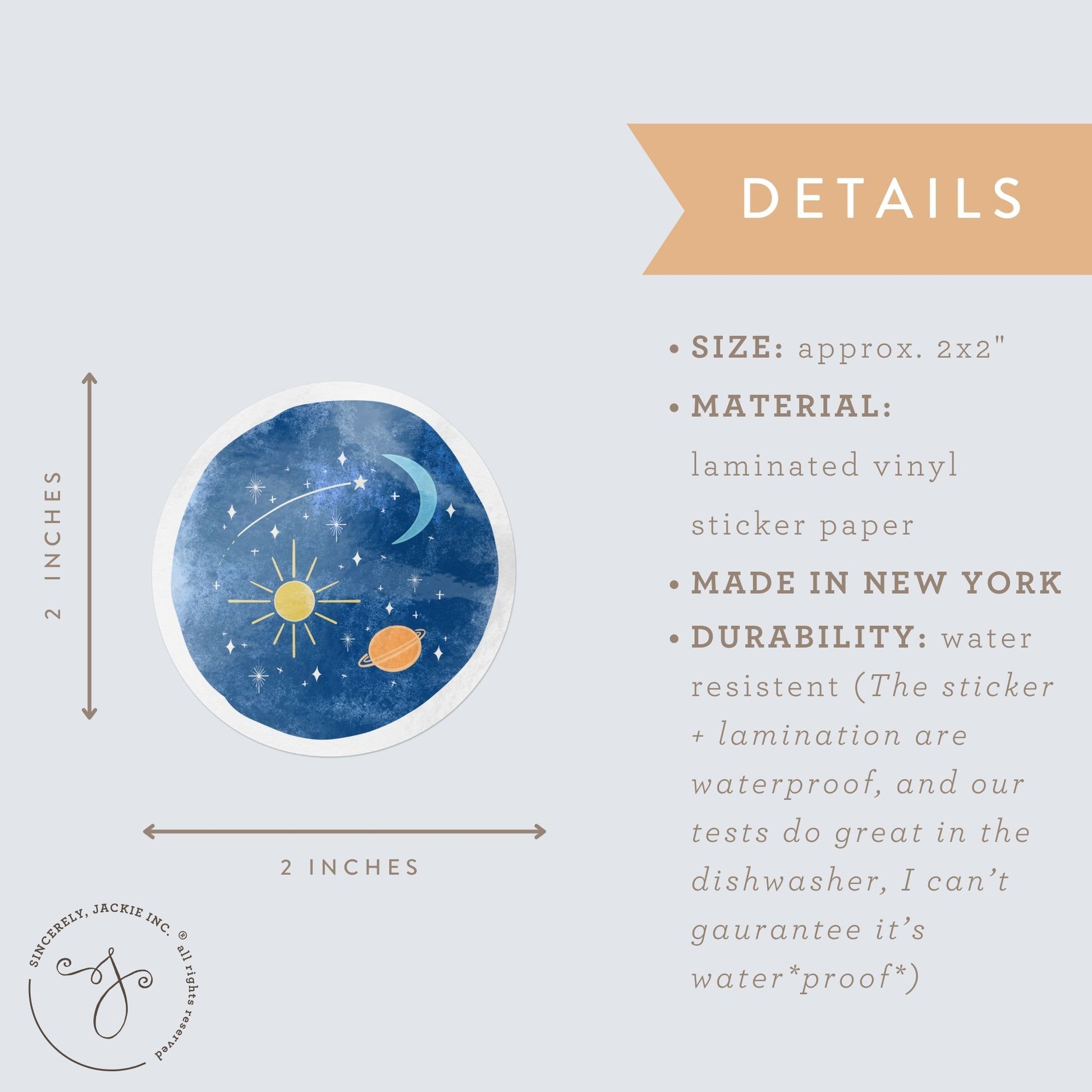 Each sticker in my shop starts as a hand-drawn illustration in my Long Island studio. I design, print, cut, and laminate every single design in small batches, using weatherproof vinyl and a glossy heat-sealed finish that’s water-resistant and top-rack dishwasher safe (because who has time for hand washing?).