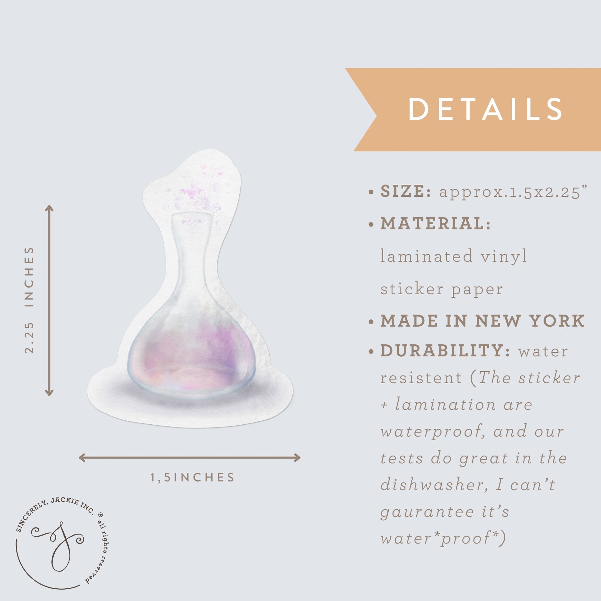 Each sticker in my shop starts as a hand-drawn illustration in my Long Island studio. I design, print, cut, and laminate every single design in small batches, using weatherproof vinyl and a glossy heat-sealed finish that’s water-resistant and top-rack dishwasher safe (because who has time for hand washing?).